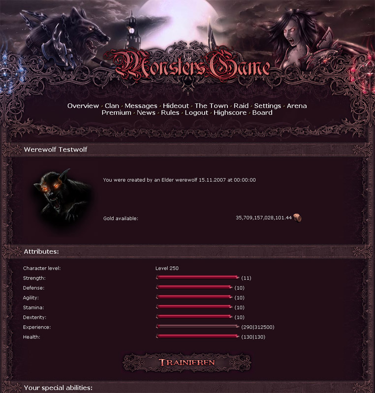 Po tisíce let již zuří nelítostná válka mezi vlkodlaky a upíry. Není to válka o lovná uzemí, je to konečná bitva, která rozhodne, kdo bude vládnout světu. Válka mezi vlkodlaky a upíry se s příchodem moderního věku také rozšířila na internet a dala i tobě šanci přidat se k jedné z bojujících stran, možná i posunout pomyslné misky vah v prospěch tvé strany. Herní základy