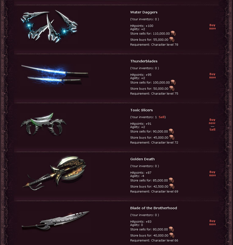 Odkaz "Premium" vás přivede do oblasti, kde si můžete koupit Krystaly krve. V krvavém chrámu můžete použít Krystaly krve na nákup Premium účtu pro váš herní účet nebo je směnit za zlato v poměru závislém na úrovni. Krystaly krve lze použít také v obchodě ke koupi amuletů nebo mohou být použity ke zlepšení vaší zbraně na stránce s přehledem postavy (nebo v "Inventáři" , pokud jej používáte) ..